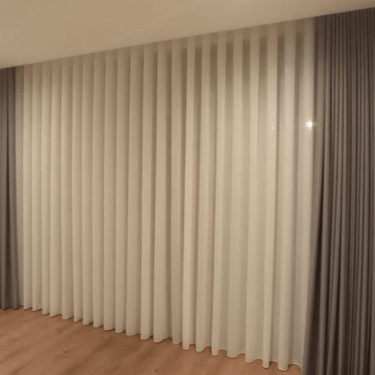 Double curtain layering combines a decorative sheer in front with a functional block-out at the back. This style is perfect for achieving both softness and utility.