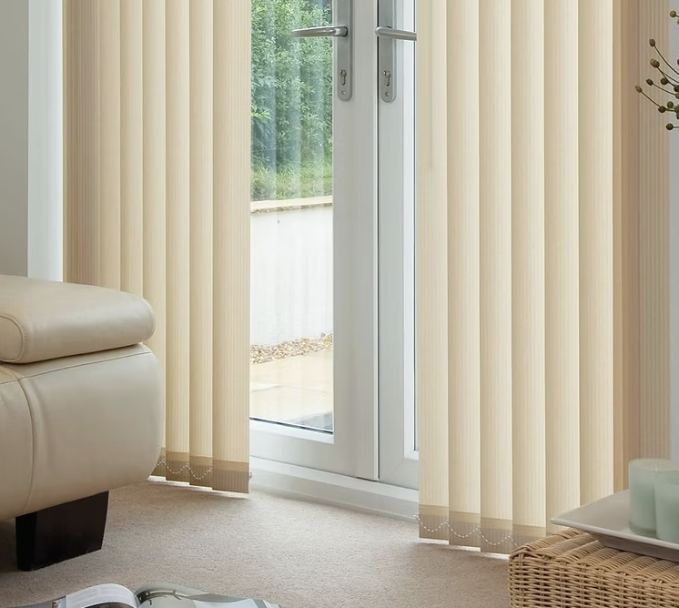 Ideal for large windows and sliding doors, vertical blinds offer smooth light control with a simple wand operation—no cords, making them a child-safe choice.